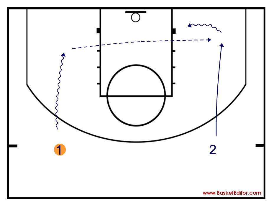 1 con balón, progresa y a la vez, 2 con él. El objetivo de 2 es ofrecer continuamente una línea de pase para 1. El pase es un pase para tiro, por lo que este deberemos hacer hincapié en que este vaya al pecho de 2.