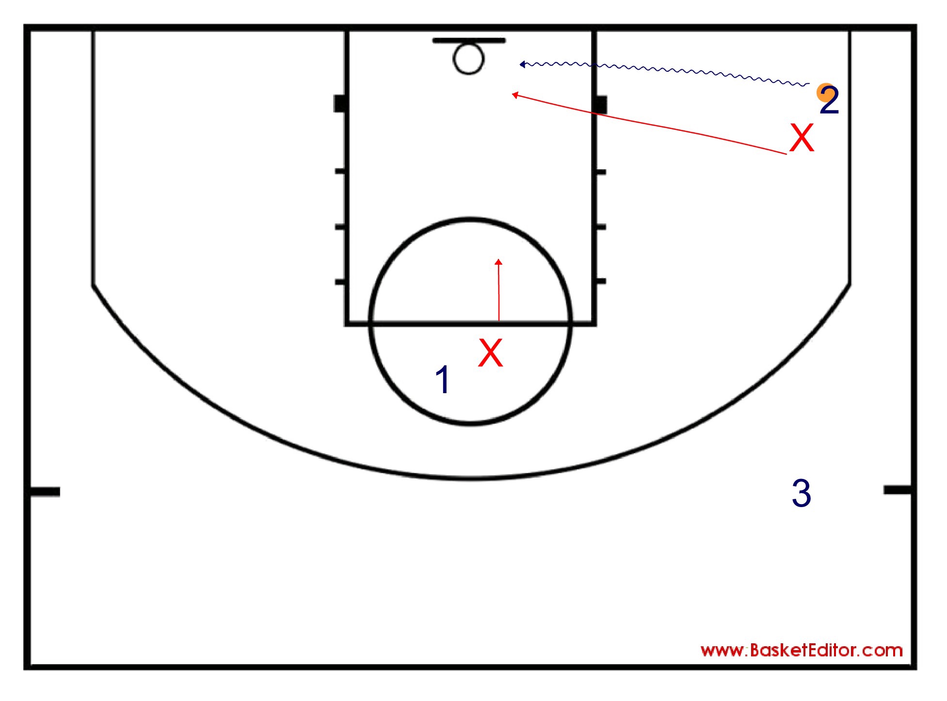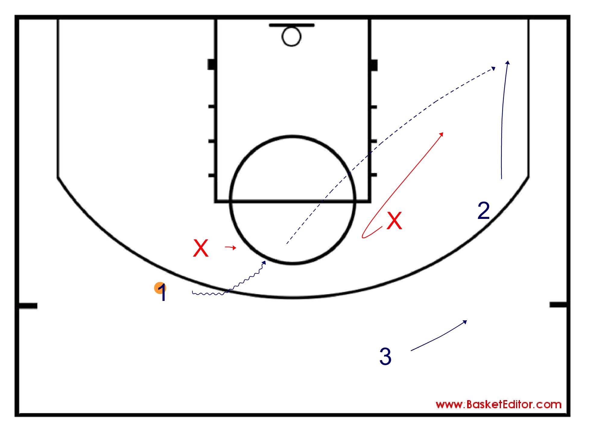 2, tras recibir, inicia penetracion a canasta.